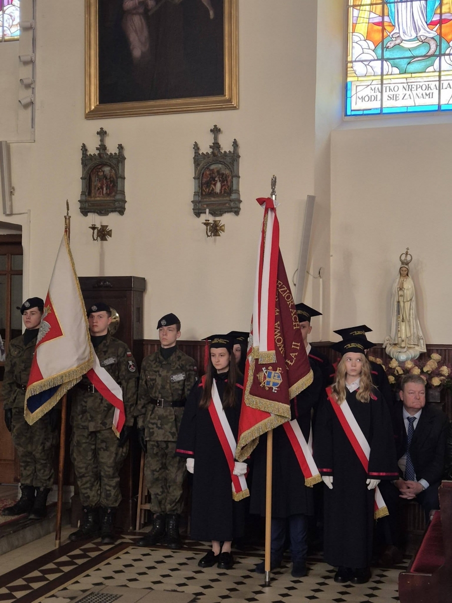Rozpoczęliśmy Mszą Świętą za Ojczyznę z pocztami sztandarowymi w kościele parafialnym w Sobieniach-Jeziorach, zakończoną programem religijno-patriotycznym w wykonaniu uczniów Publicznej Szkoły Powstawowej im. Jana Pawła II w Sobieniach-Jeziorach.