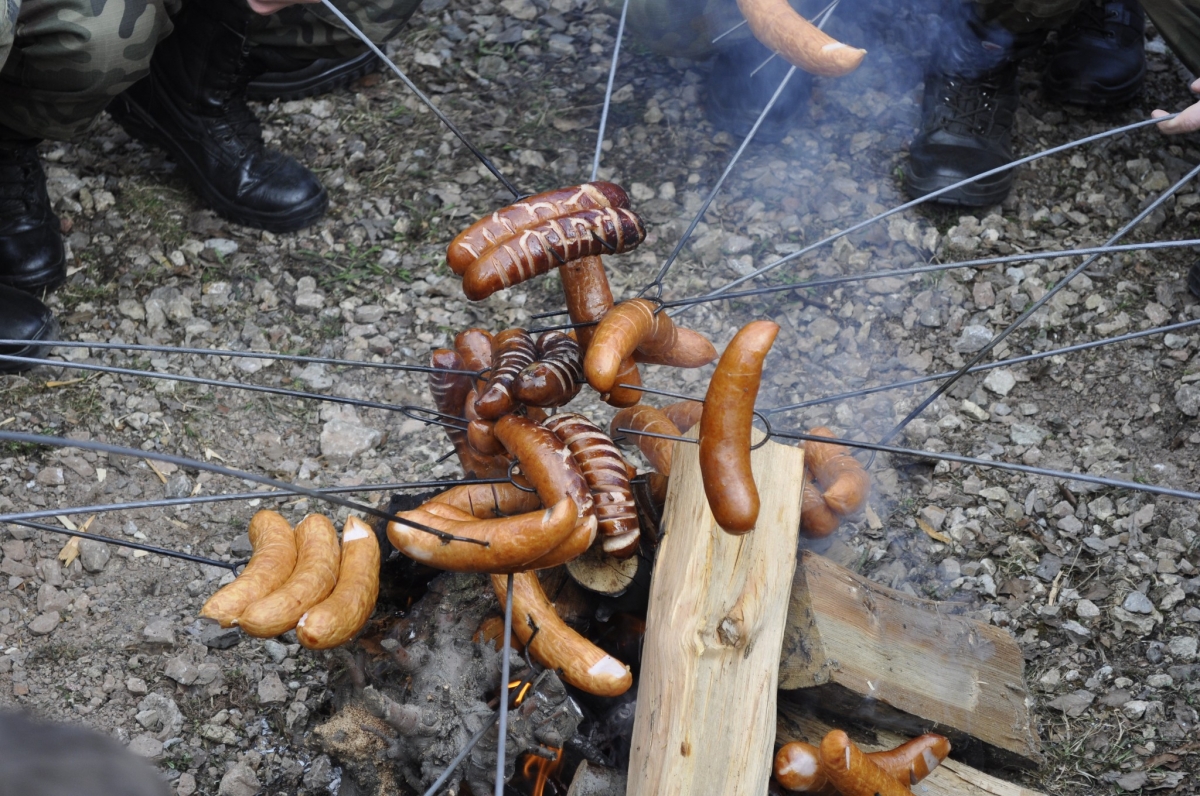 Poczęstunek odbył się w warunkach polowych - posililiśmy się kiełbaskami z ogniska. Na zakończenie lekcję historii zamkniętą w XIX-wiecznych strojach i broni dał nam pan Bartosz Mróz ze stowarzyszenia Semper Fidelis Res Publicae.