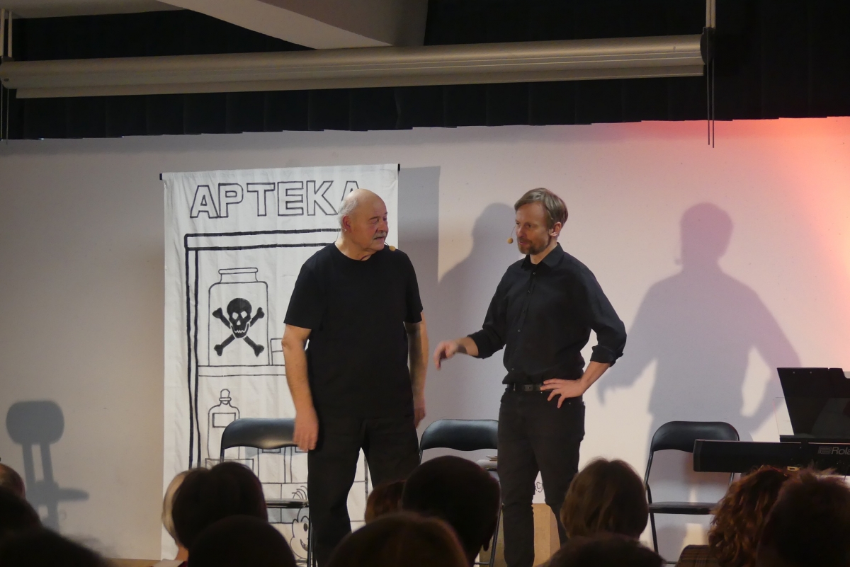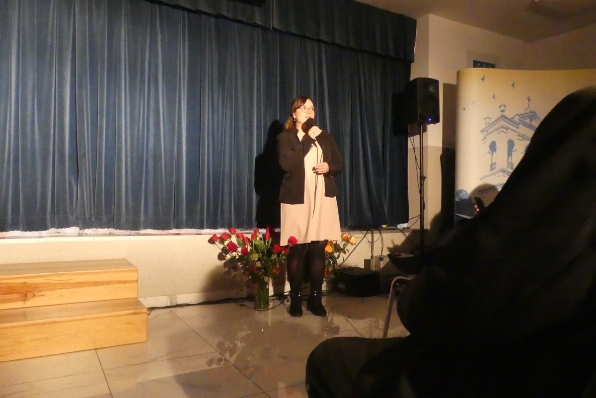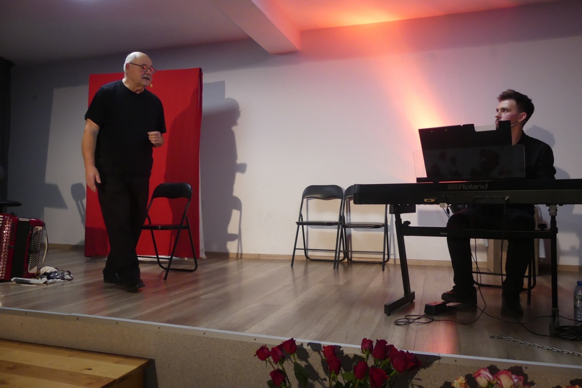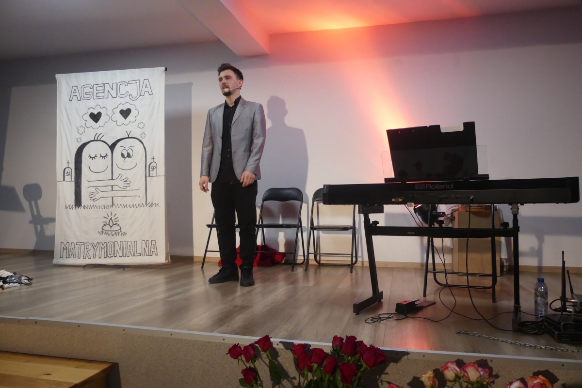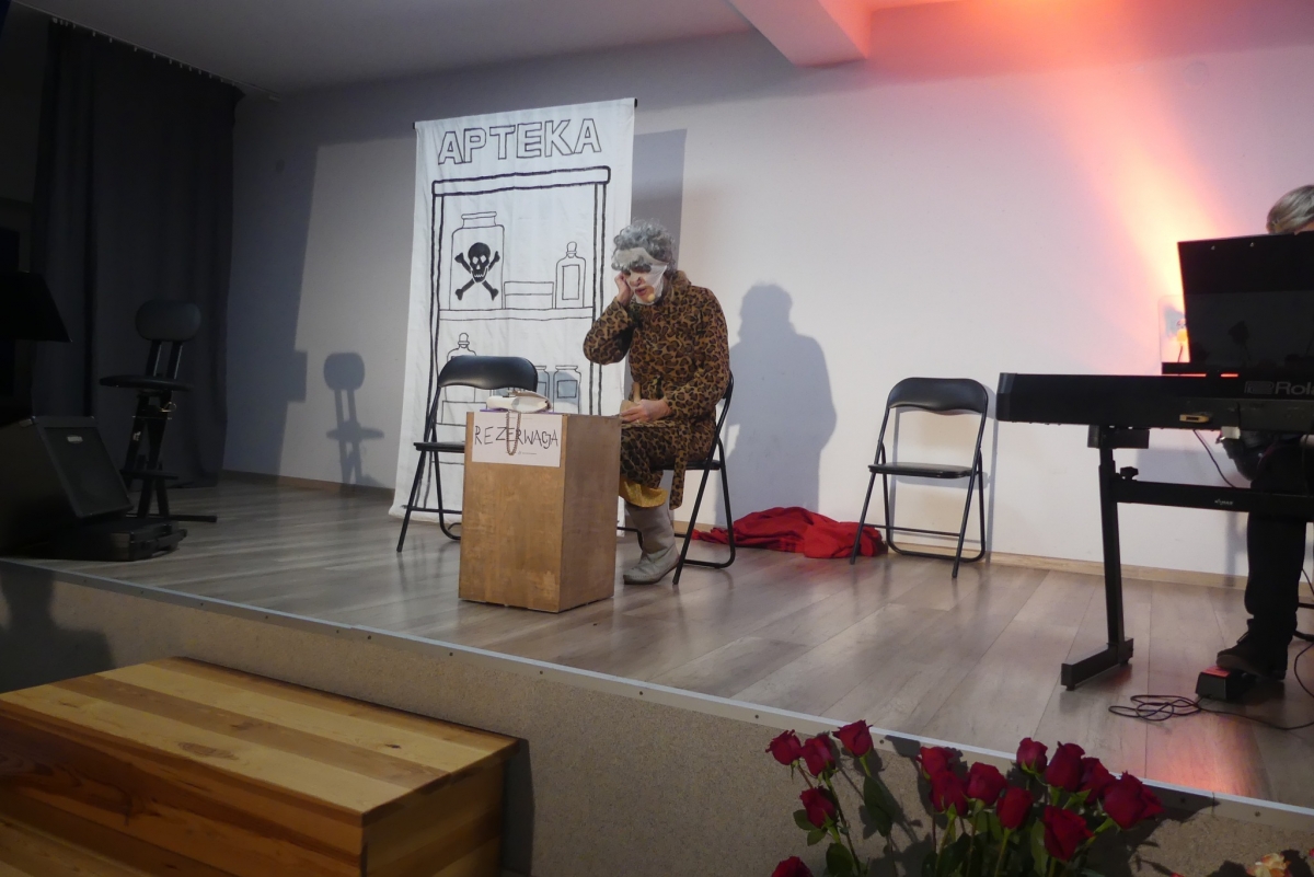Wieczór rozpoczęła życzeniami pani Edyta Rosłaniec - Sekretarz GMINA Sobienie-Jeziory oraz nasza P.O. Dyrektora pani Paulina Szymańska. Chwilę potem na scenę wyszedł kabaret "Czy Jakoś Tak", który bawił publiczność ponad godzinę. Po widowisku przy gromkim "Sto lat!" wznieśliśmy toast za zdrowie Seniorów. Każdy gość dostał także piękną różę.