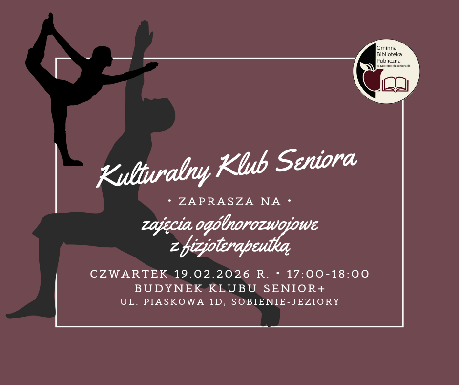 Zapraszamy Klubowiczów na zajęcia ogólnorozwojowe z fizjoterapeutką, które odbędą się w czwartek 19.02.2026 r. w godz. 17:00-18:00 w budynku Klubu Senior+ w Sobieniach-Jeziorach.
